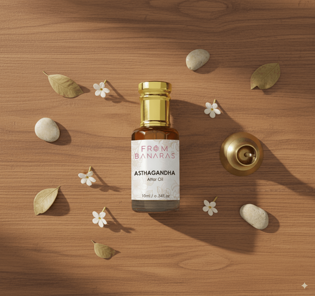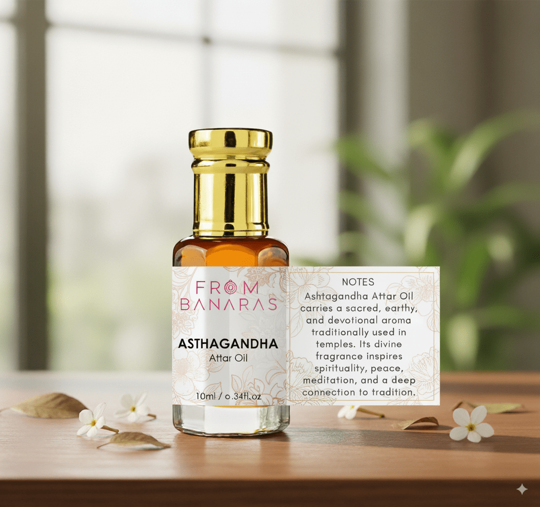 Experience the divine aroma of Ashtagandha Attar, a natural, long-lasting perfume oil from Banaras. Perfect for meditation, rituals, and everyday wear.