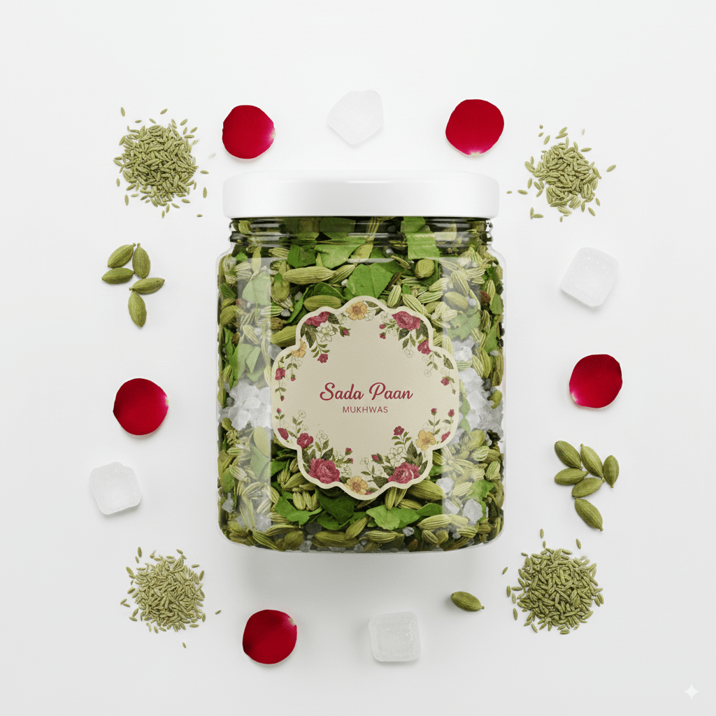 For paan lovers who prefer a herbal taste without sweetness, our Sada Paan Mukhwas is crafted from betel leaves πΏ, mild herbs πΈ, and supari π°.